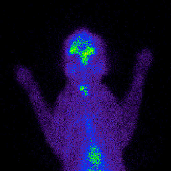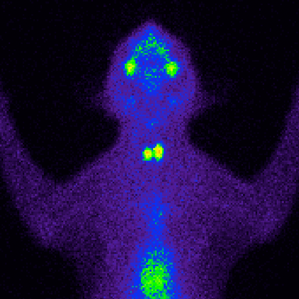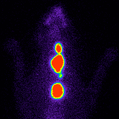 Es una prueba de diagnóstico por la imagen en la que se utiliza un radiofármaco que se concentra en el tejido tiroideo. Esto permite identificar y visualizar todo el tejido tiroideo hiperfuncional, independientemente de su localización, confirmando inequívocamente el diagnóstico y aportando valiosos datos (su volumen, localización anatómica y actividad funcional) para elegir la mejor opción terapéutica.
